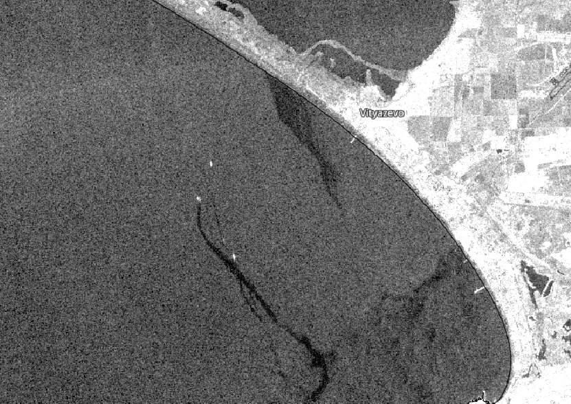 Супутникові знімки Sentinel-1 вказують на появу нафтової плями в районі Керченської протоки ще 7 квітня.