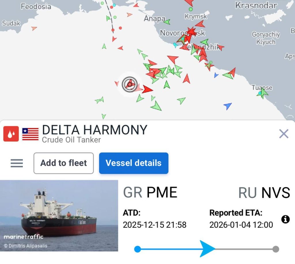 Біля Новоросійська помітили танкер Delta Harmony з «тіньового флоту»