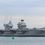 Новый британский авианосец Queen Elizabeth вышел из военно-морской базы в Портсмуте, чтобы отправиться в свой первый 28-недельный рейс. На его борту – 32 летательных аппарата.