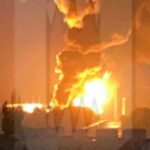 Внаслідок атаки дронами в Азові Ростовської області рф спалахнули резервуари з нафтопродуктами.