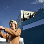 Голова Єврокомісії розбила пляшку об нове екосудно Maersk, яке щойно отримало ім’я (фото)