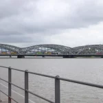 Контейнерне судно прямувало до гавані Пеутехафен, коли зіткнулось із мостом і пошкодило його конструкцію.