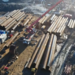Первые три опоры будущей эстакады на дороге в Одесский морской порт уже установлены.