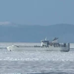 Російське судно «Александр Деев» отримало пошкодження, ймовірно, зіткнувшись із крижиною на переправі Ваніно-Холмськ.