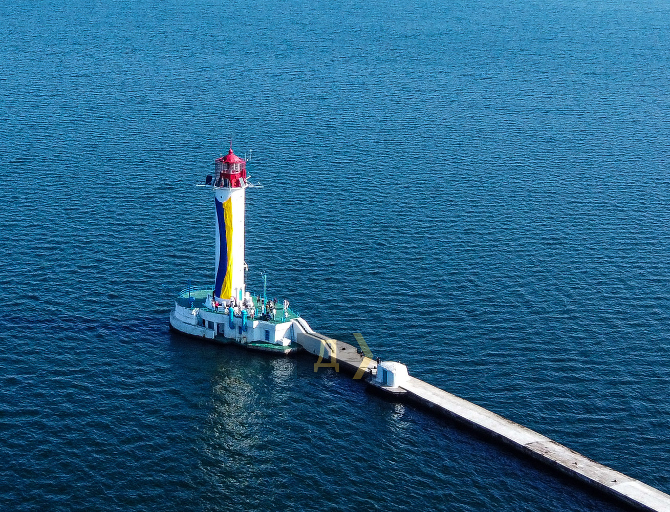 Воронцовский маяк в Одесском порту украсили флагом Украины.