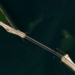 Відповідно до супутникових знімків, з початку травня кількість підтоплених барж під Кримським мостом зросла до 30 одиниць.