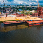 Плавкран «Захарий» снова приступил к строительству моста в Запорожье