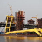 Модернизированный кран прибыл в порт Украины для строительства вантового моста через реку Днепр. Он нужен не только для поднятия тяжелых конструкций, но и для транспортировки отдельных секций пролетного строительства моста.