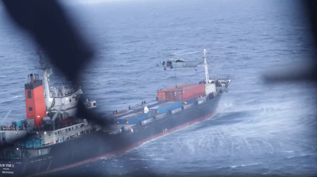 Центральне командування США повідомило в соціальних мережах, що морські піхотинці висадилися на борт судна Blue Star III у вівторок, 28 квітня, але «відпустили судно після проведення обшуку та підтвердження того, що його рейс не включатиме захід в іранський порт». На відео показано, як американські військові швидко спускаються з гелікоптера на судно.