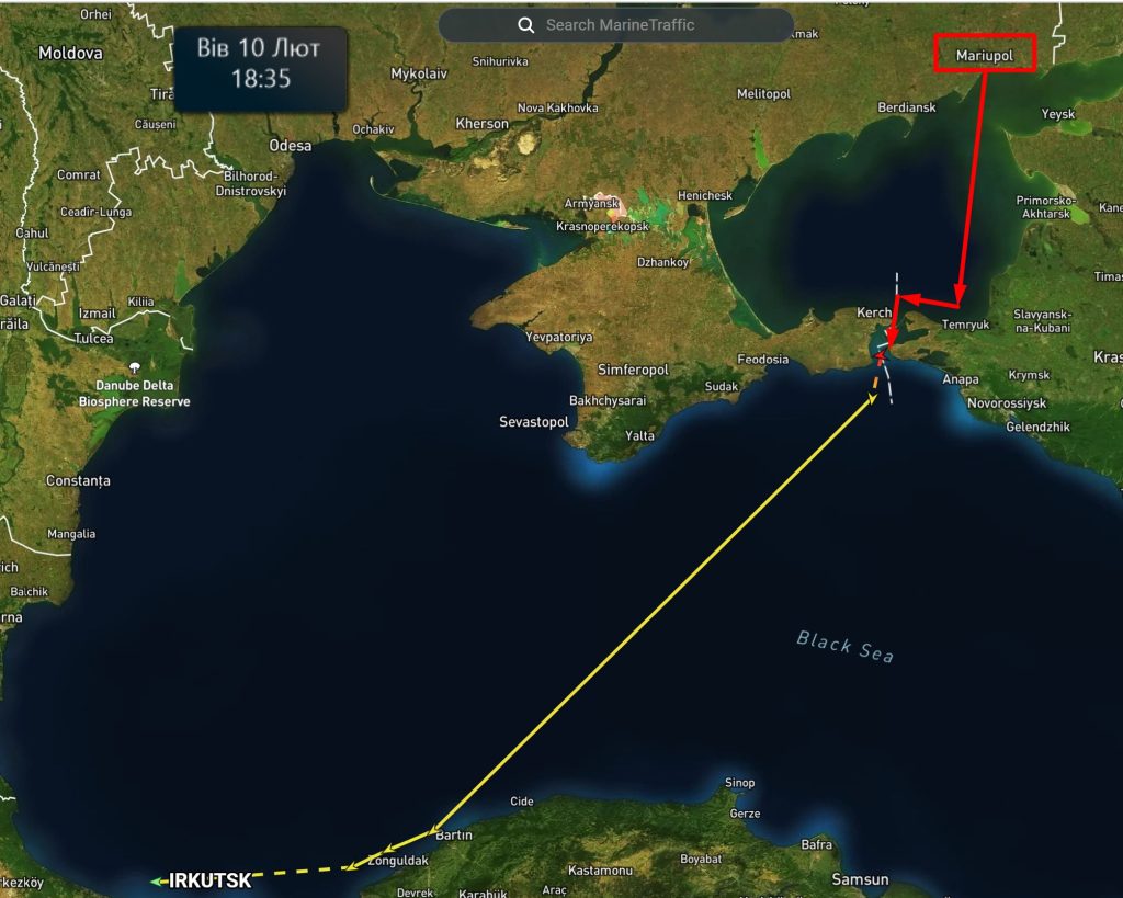 За її словами, наразі Irkutsk йде в Александрію (Єгипет) з окупованого Маріуполя з вантажем 8178.1 тонн пшениці.