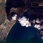 Журналісти проєкту «Схеми» (Радіо Свобода) опублікували супутникові знімки від 8 жовтня. На знимках видно масштабні клуби диму на території нафтобази у Феодосії, що перебуває під окупацією Росії.