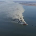 У затоці в США вже добу горить безпілотна баржа з металобрухтом