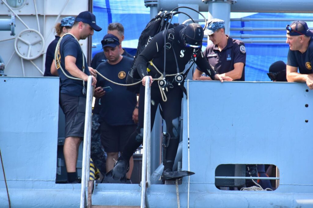 Военные моряки отрабатывают погружения на глубину более 30 метров в составе интернациональных водолазных групп. Также они отработают операции по подводному разминированию, подводным подрывным и техническим работам.