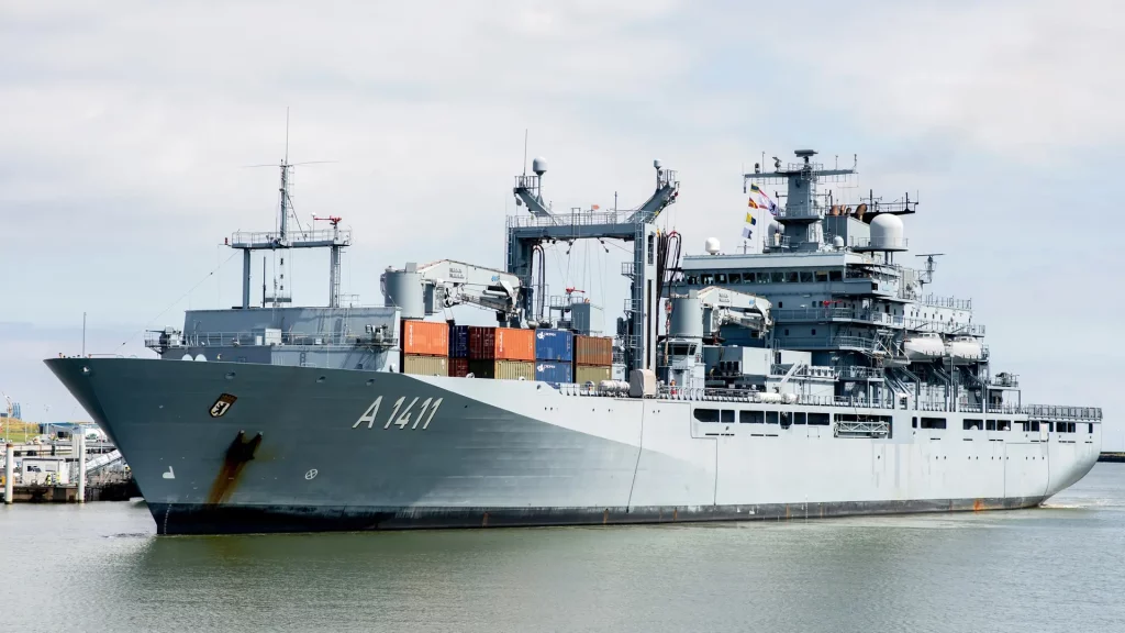 Довідка: Berlin — один із трьох кораблів забезпечення однойменного класу (тип 702). Його прийняли до складу ВМС Німеччини у 1994 році. Судно використовується для постачання боєприпасів, пального, провіанту та медичного забезпечення флоту під час тривалих операцій у морі.