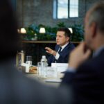 Президент обсудил со СМИ и кадровые вопросы. В частности, Зеленский отметил, что доволен министром инфраструктуры Александром Кубраковым, а также, «на данный момент», — министром экономики и первым вице-премьером Юлией Свириденко.